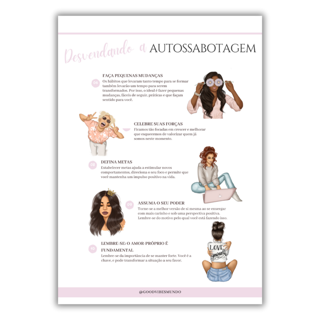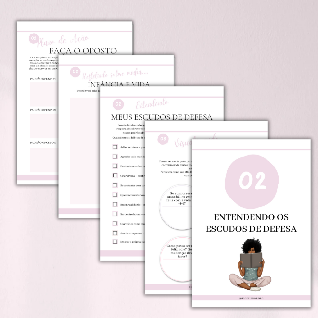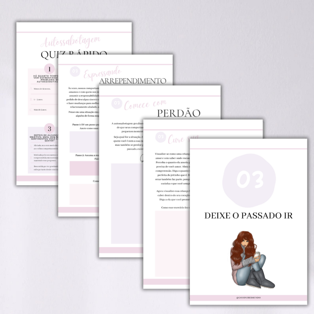 Na Good Vibes Mundo, criamos materiais terapêuticos pensados para transformar o processo de cura emocional. Nossos recursos práticos ajudam adultos a desenvolver autoconhecimento, autocompaixão e equilíbrio emocional. Permita-se crescer com materiais de qualidade, profundos e visualmente acolhedores!