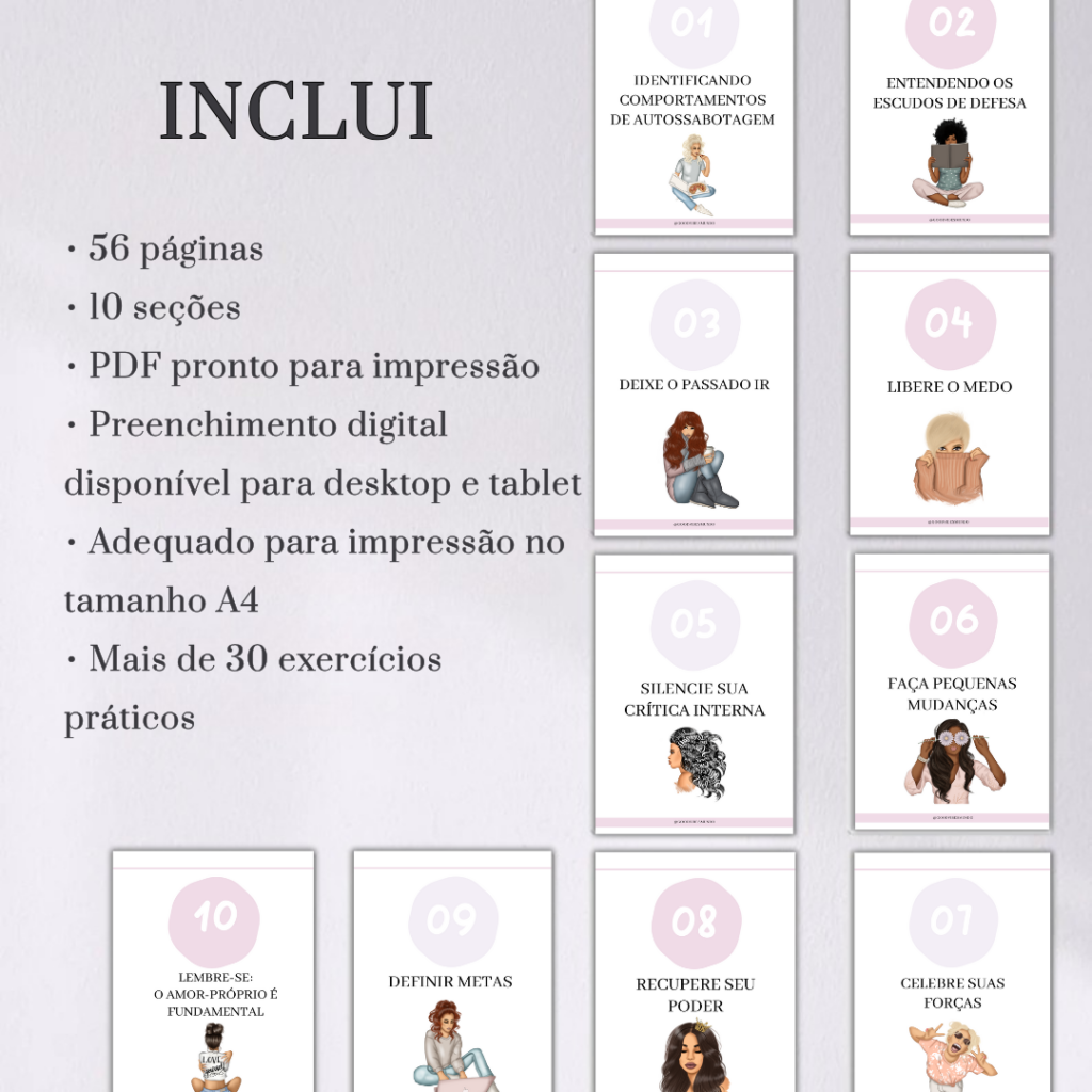 Na Good Vibes Mundo, criamos materiais terapêuticos pensados para transformar o processo de cura emocional. Nossos recursos práticos ajudam adultos a desenvolver autoconhecimento, autocompaixão e equilíbrio emocional. Permita-se crescer com materiais de qualidade, profundos e visualmente acolhedores!
