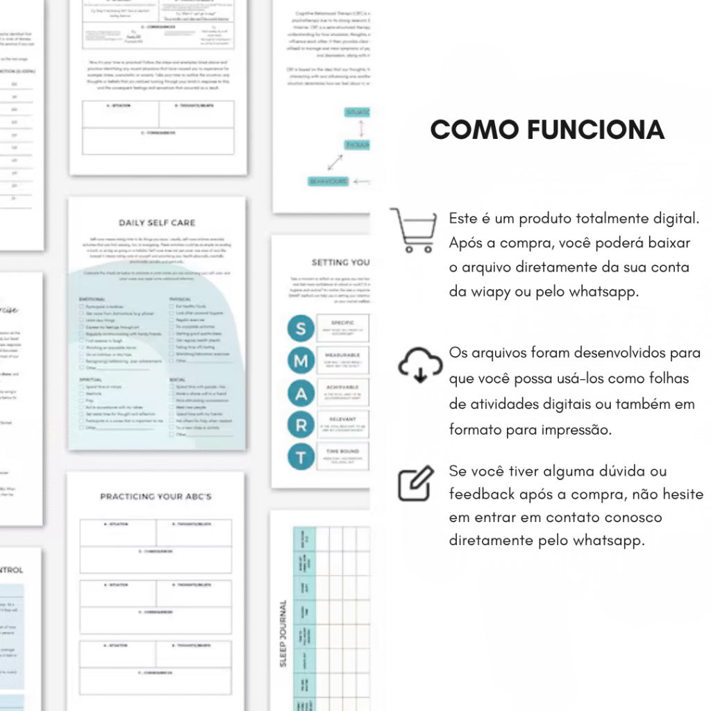 Espaços para escrever e desenhar sobre seus gatilhos e sensações